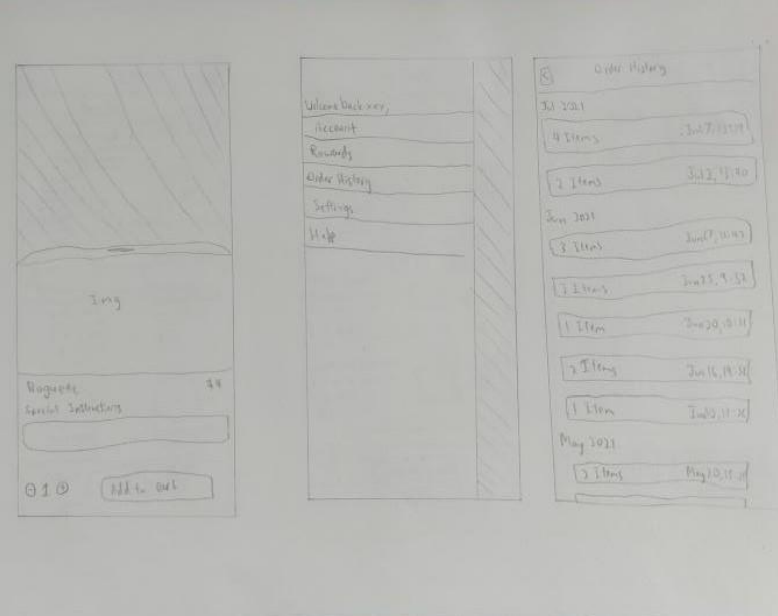 After researching popular similar applications like Grab and Food Panda, I came out with a few screen layout sketches to see which ones would suit my mobile application.